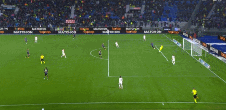第41分鐘,迪農(nóng)鏟倒扎卡尼,裁判出示黃牌對(duì)其警告